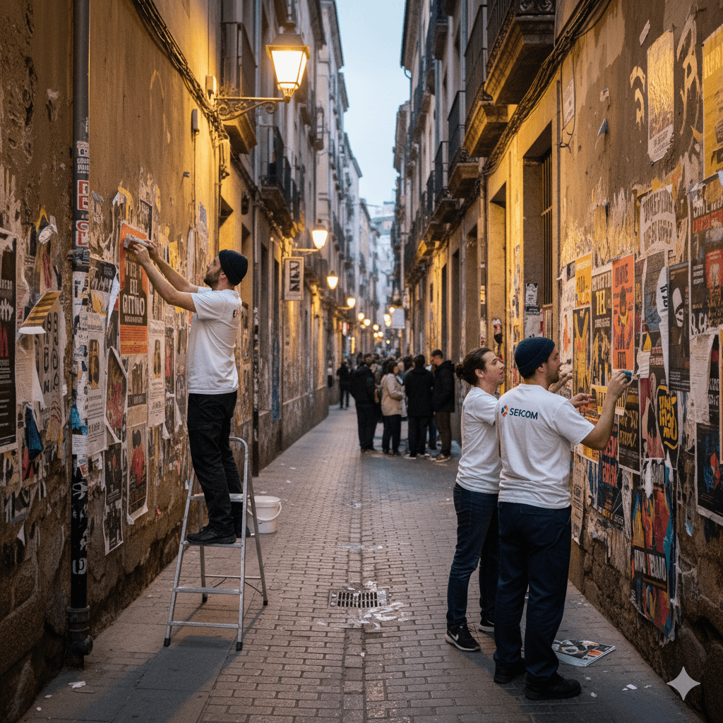 La pegada de carteles en España es, sin duda, una de las estrategias publicitarias más efectivas y directas que existen para captar la atención del público en calles, barrios y zonas de alto tránsito. A pesar de la digitalización y el auge de la publicidad online, los carteles mantienen una fuerza única porque son imposibles de ignorar: el transeúnte, el conductor o el vecino siempre va a cruzarse con ellos en su día a día, generando un impacto visual inmediato y constante. Este tipo de publicidad tiene un alcance masivo y local a la vez, lo que la convierte en una herramienta muy versátil: tanto una pequeña tienda de barrio que busca dar a conocer sus productos como una gran empresa que organiza un evento pueden beneficiarse de la pegada de carteles para llegar a cientos o miles de personas cada día. En España, donde las ciudades están llenas de espacios estratégicos —plazas, avenidas principales, estaciones de transporte público, zonas universitarias y áreas comerciales—, la colocación de carteles permite transmitir mensajes claros, directos y memorables. Además, la pegada de carteles publicitarios es una opción económica si se compara con otros medios como televisión, radio o campañas digitales, y su permanencia en el espacio público asegura una visibilidad continua durante días o semanas. Este tipo de publicidad refuerza la presencia de marca, recuerda fechas importantes de conciertos, ferias o actividades culturales, e invita a la acción de una forma sencilla pero efectiva: mirar el cartel, anotar la información y participar. La fuerza del mensaje impreso radica en que no depende de algoritmos ni de que el usuario busque la información, simplemente está ahí, visible para todos, impactando de manera natural. En un país con tanta actividad cultural y comercial como España, donde cada ciudad y cada pueblo organiza fiestas, celebraciones y actividades locales, la pegada de carteles sigue siendo imprescindible para asegurar la asistencia y el conocimiento generalizado de cualquier evento. Y es que, al contrario de lo que se piensa, no se trata de un método anticuado: es un complemento estratégico que refuerza las campañas digitales y que ofrece resultados medibles en forma de mayor asistencia, más visitas a negocios y mayor conocimiento de marca.